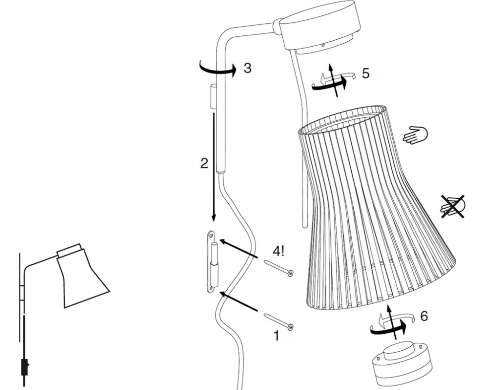 Précaution : Ne tenez pas l'abat-jour par l'extrémité large, mais par l'extrémité étroite.