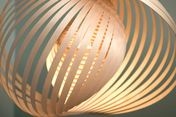Adilo merges Finnish birch wood and geometric precision with an innovative fold-out structure. From its initial flat form, the logistical marvel unfurls into a sculptural pendant lamp in a single motion. Design by Ilkka Kauppinen.