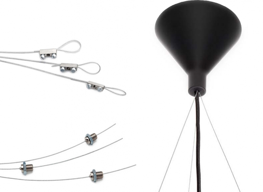 | Information | The standard cable set includes the lamp base, a textile cable, a connector, a ceiling cup, a suspension screw and an additional ring. |