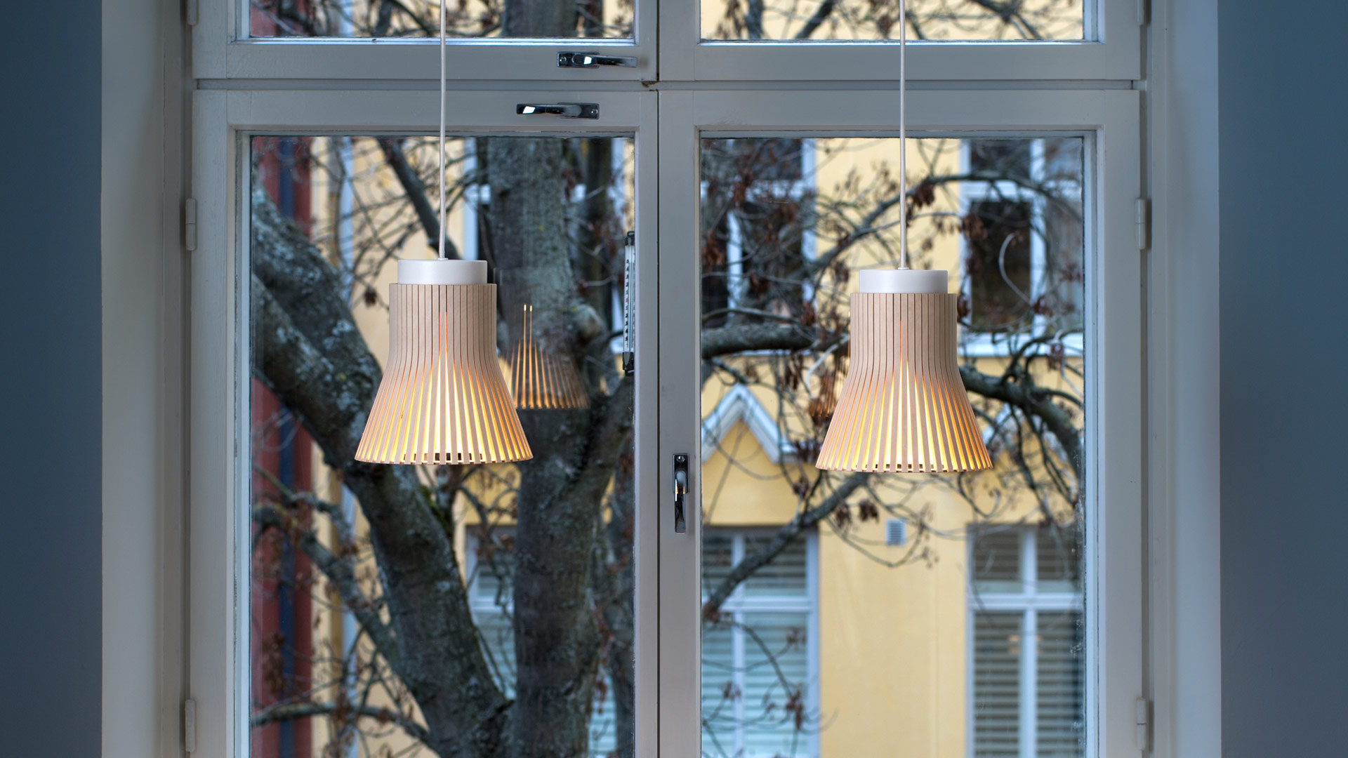 The Petite 4600 pendant, playful and compact. This pendant was developed based on multiple requests for a smaller lighting fixture. Designed by architect Seppo Koho, launched in 2016.